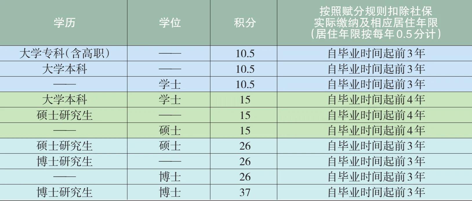 3️社保积分:社保每满一年积3分,按月份计算。社保补缴不计算分数,只计算连续缴纳月份。