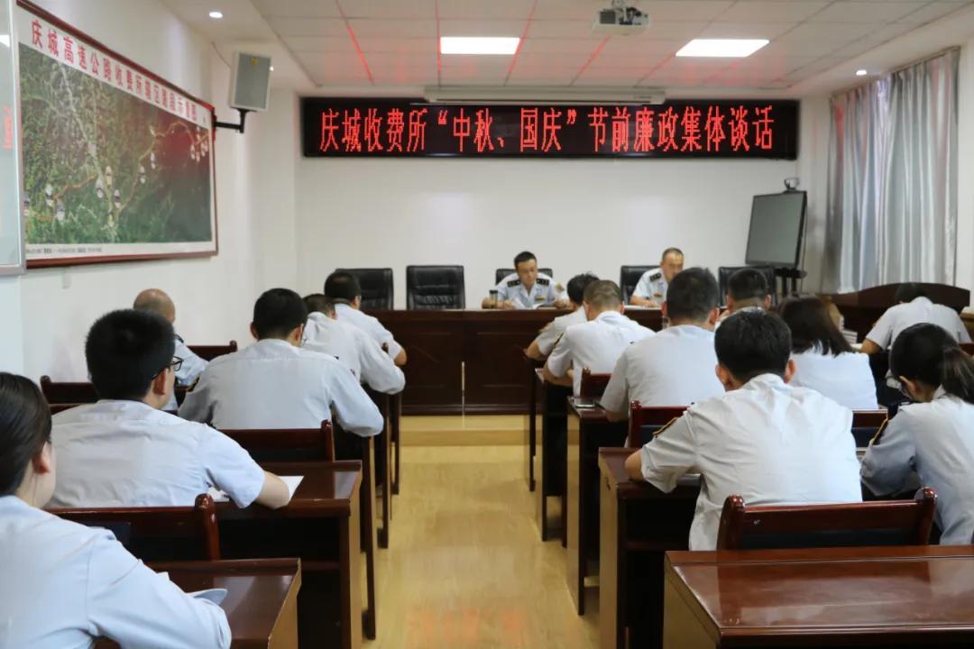 庆城收费所党支部在“双节”来临之际,对站股级管理人员和机关全体工作人员开展了集体廉政谈话,提前打好廉洁“预防针”,念好“紧箍咒”。