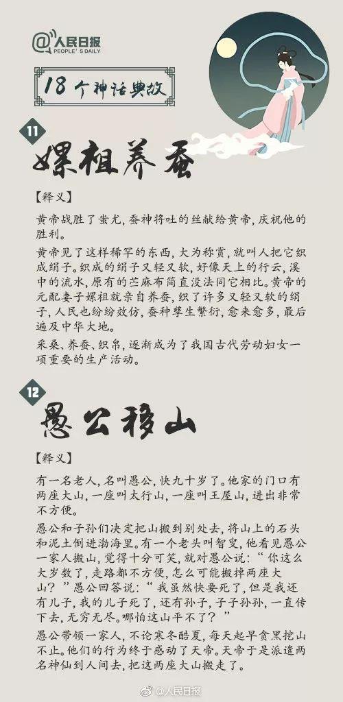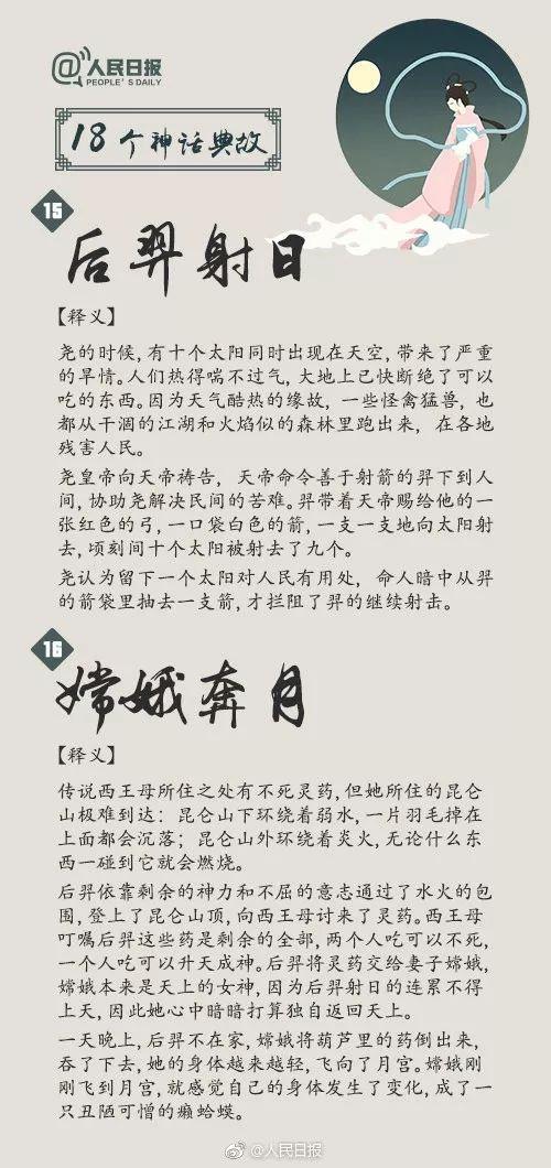 今日分享人民日报发布的18个脍炙人口的神话典故,一起领略神话的魅力吧!