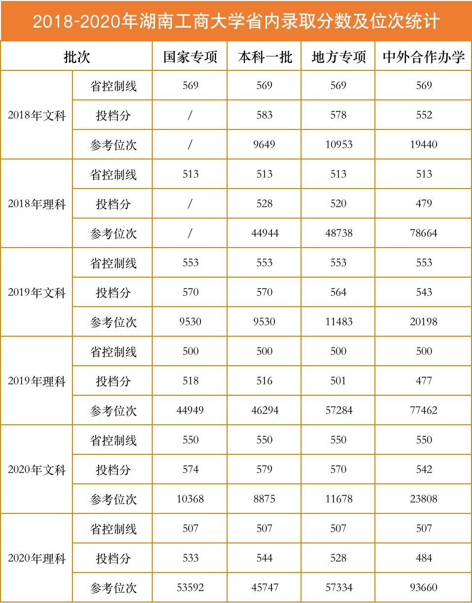 2018-2020年湖南工商大学省内录取分数及位次