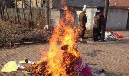 所不同的就是把寿衣铺在棺材内,骨灰撒在上面封棺,等所有客人祭奠完毕,去事先挖好的墓坑安葬,骨灰盒随纸房一同烧掉。