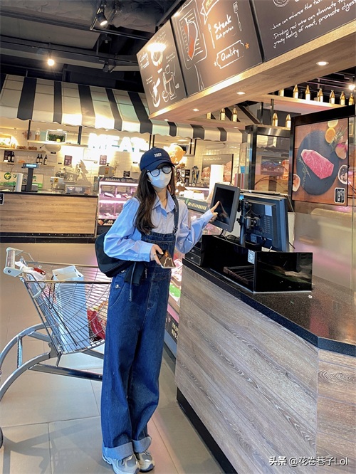 “蓝色衬衫+牛仔背带裤” 元气满满,少女感十足哦!直筒裤腿休闲显瘦藏肉,搭配蓝色衬衫还是非常清爽的!再搭配不同的棒球帽,就是标准的甜酷女孩搭配!直筒版型显瘦显高绝了!