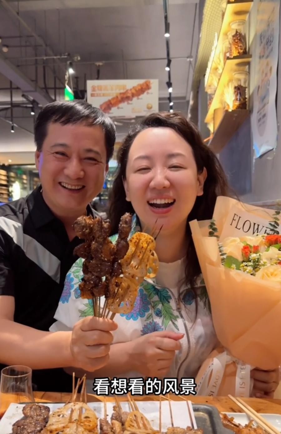 晒完儿女,关凌不忘与制片人老公秀恩爱。关凌镜头下,身为老夫老妻的两个人同吃一个冰激凌,一看感情就很好。