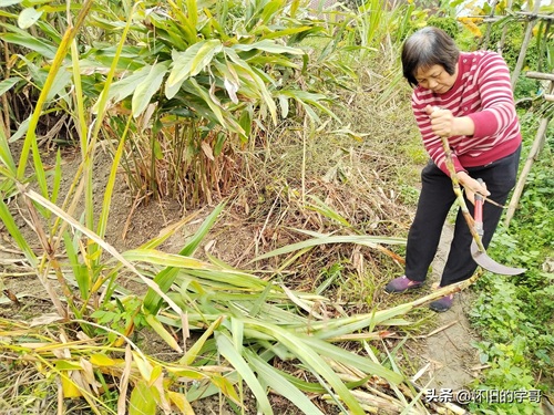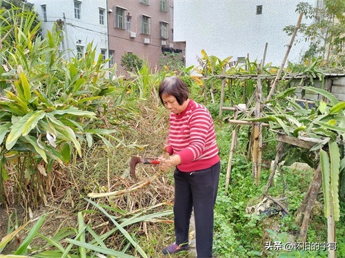 妈妈开始挑长得比较粗壮的竹蔗进行砍斫。