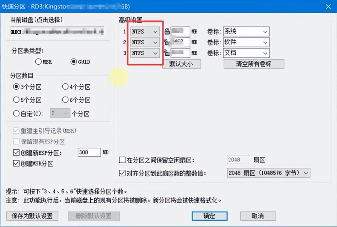 (3)NTFS:当前Windows中最普遍分区,突破4GB的单个文件的限制,适合注重数据安全和稳定性的用户使用。