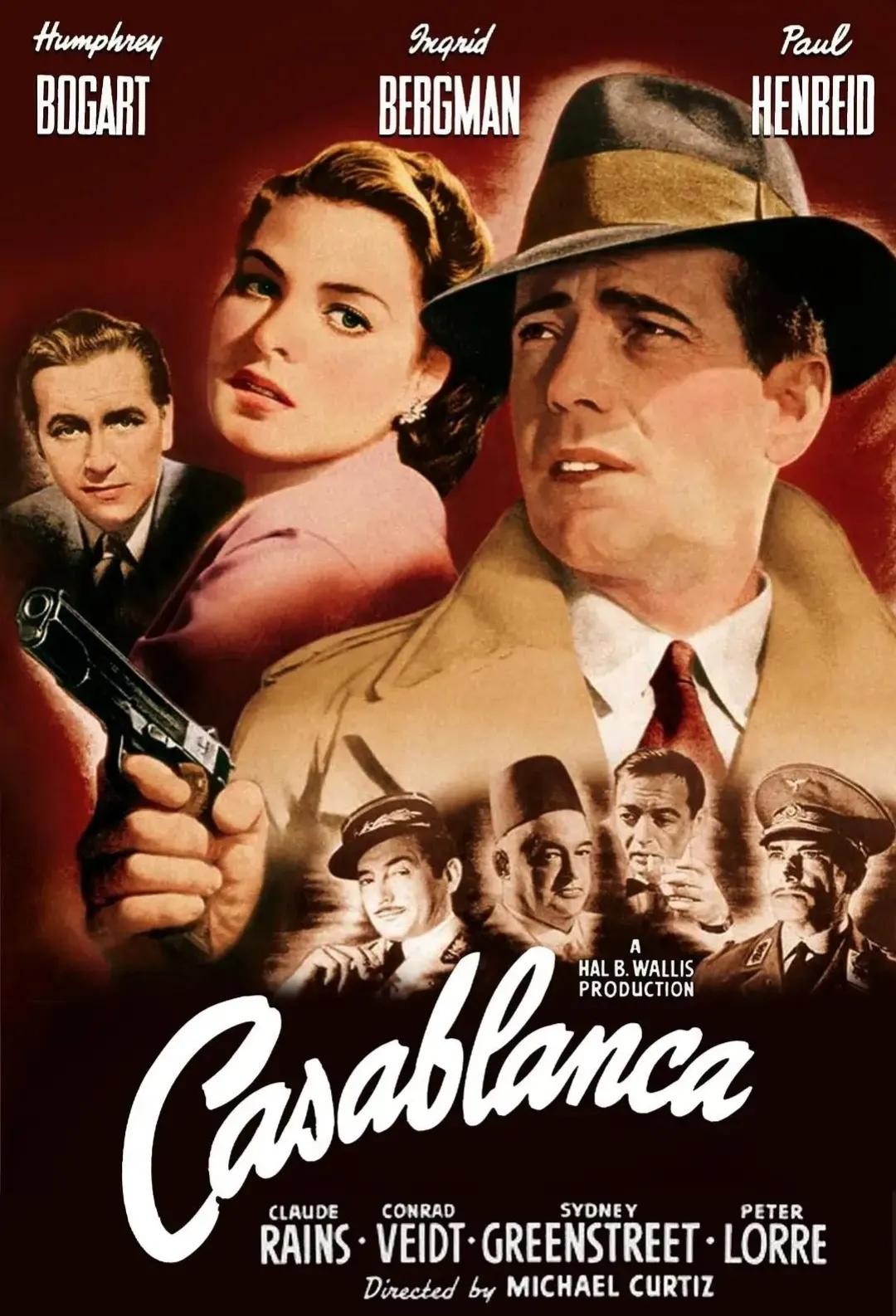 1《卡萨布兰卡》迈克尔.柯蒂兹执导的爱情片。亨弗莱.鲍嘉与英格丽.褒曼,克劳德.雷恩斯等联合主演。该片获得第16届奥斯卡金像奖最佳影片等3项大奖。