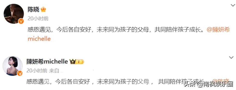 “感恩遇⻅,今后各⾃安好,未来同为孩⼦的⽗⺟,共同陪伴孩⼦成⻓。”