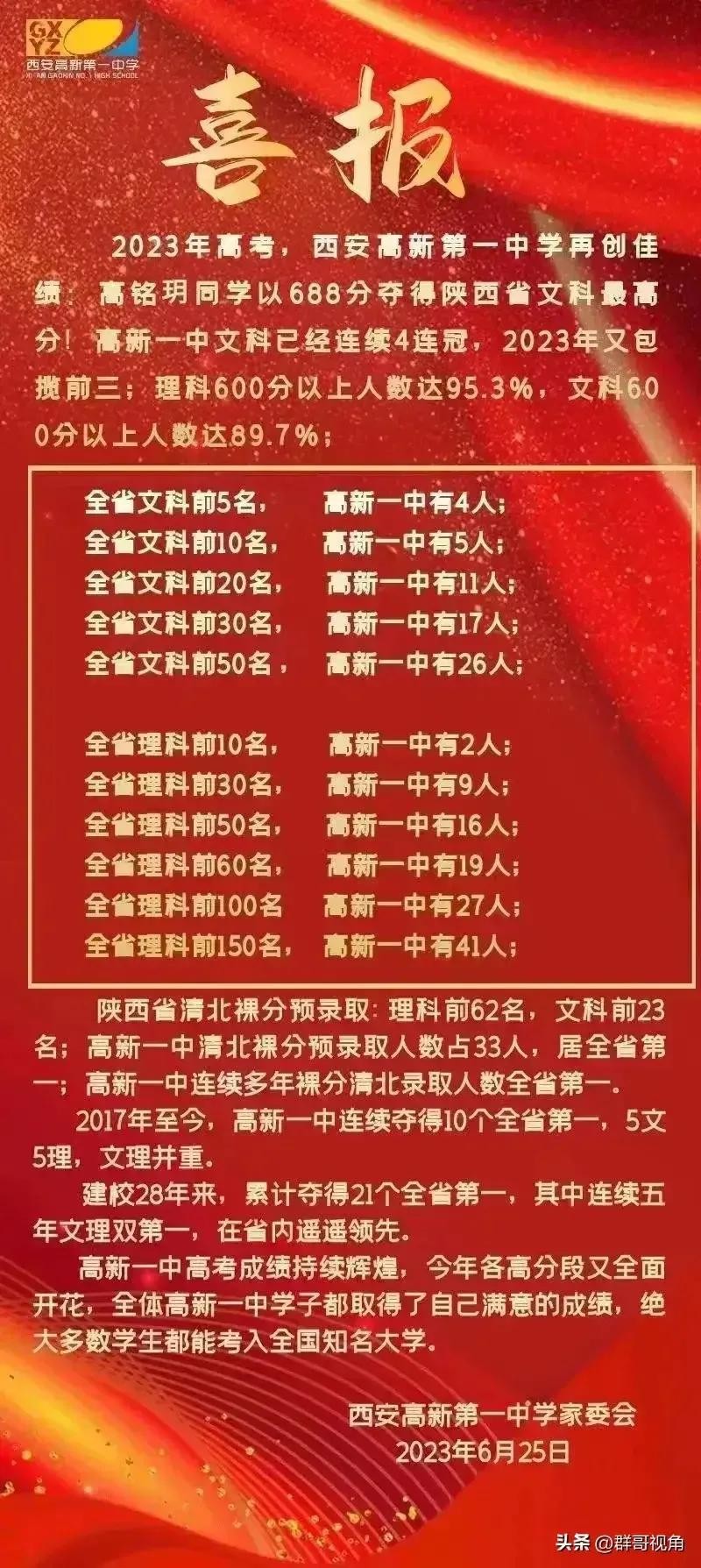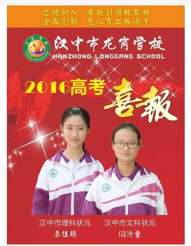 通过上面的贺信可以看出,汉中市文理科前十名龙岗中学占18人,其中:理科第一名696分,但很遗憾的是,喜报没有提到“获得汉中理科状元”。