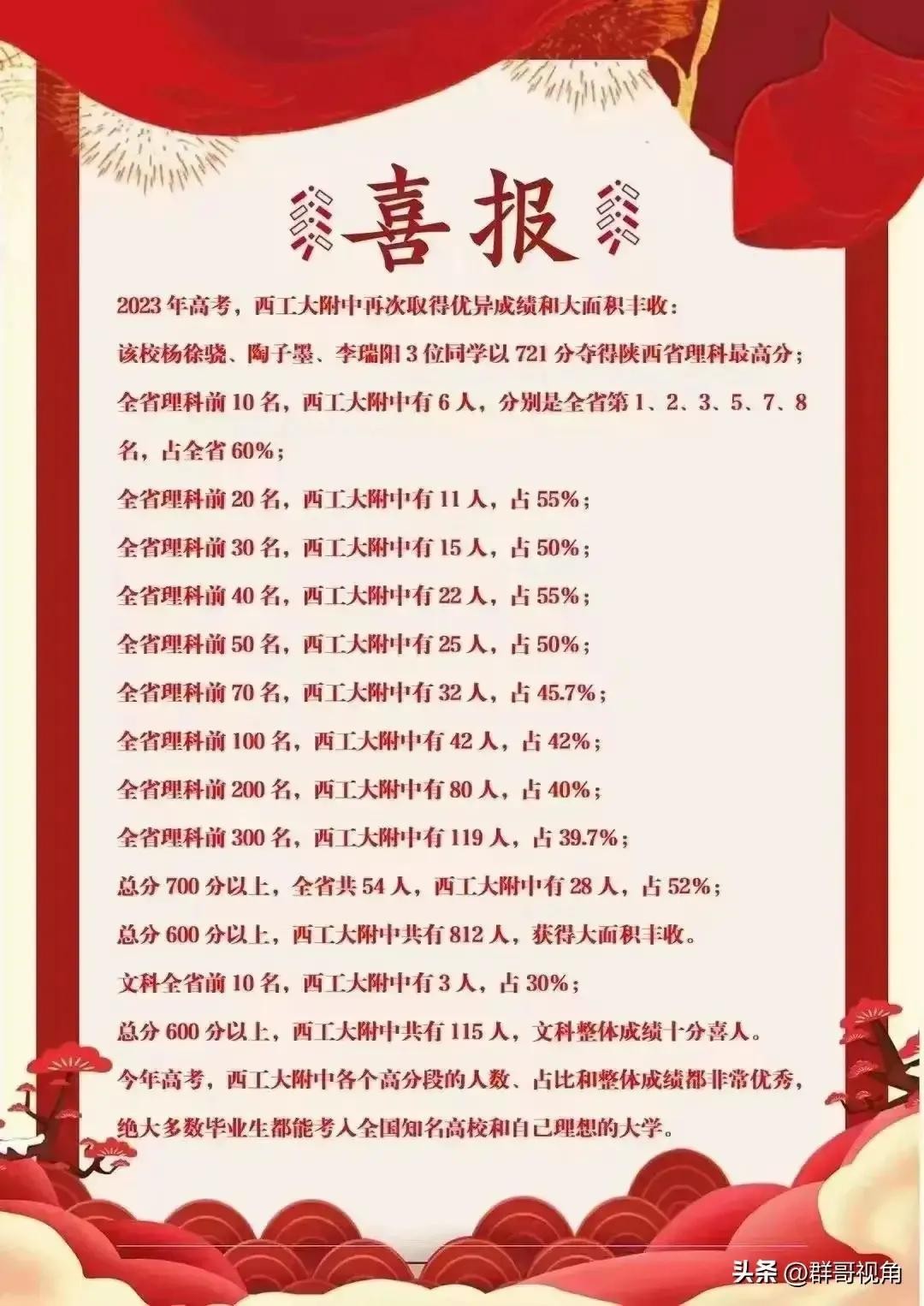 作为一名吃瓜群众,我们不可能知道汉中龙岗中学今年高考成绩(高分段)下降的真实原因,这个也许只有学校内部人士能够分析清楚,是这届学生生源质量不好(是不是最优秀的学生去了西安的高中,有没有业内人士能够告诉大家,省理科前30名有无汉中籍考生),或者在强调给学生减负的大环境下放松了管理,需要龙岗学校的管理者认真分析。