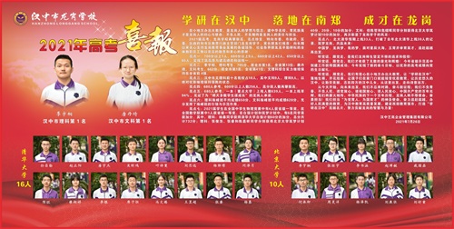 2021年,同样收获汉中市文、理科状元:
