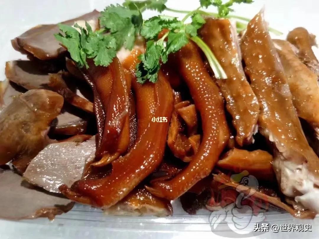 6、潮汕卤味是一道色香味俱全的地方传统名肴,属于粤菜系潮州菜,是粤菜的重要组成部分。其制法,是以红糖、水、盐、豆酱(或酱油)、葱头、南姜、桂皮、八角、茴香等十几种天然香料进行“打卤”。将鹅、鸭或猪脚之类浸入卤锅,科学用火卤制。
