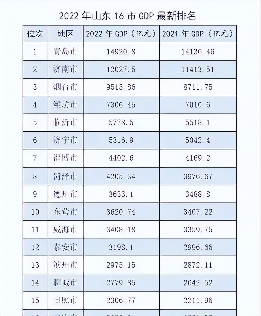 山东省各地市GDP排名:青岛排第一,济南退居第二,烟台跻身第三