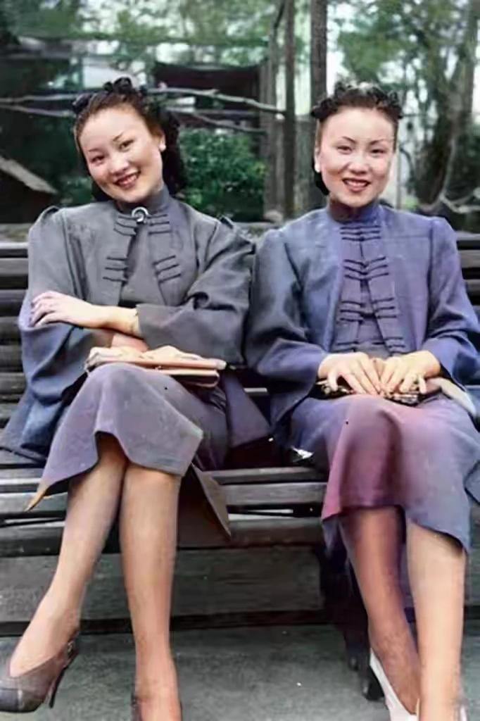 △1939年的虹口公园,一对双胞胎姐妹正在长椅上休息。