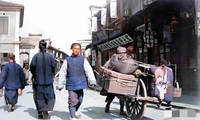 △1903年的汉口路,运输货物的主力,还老式的独轮车。