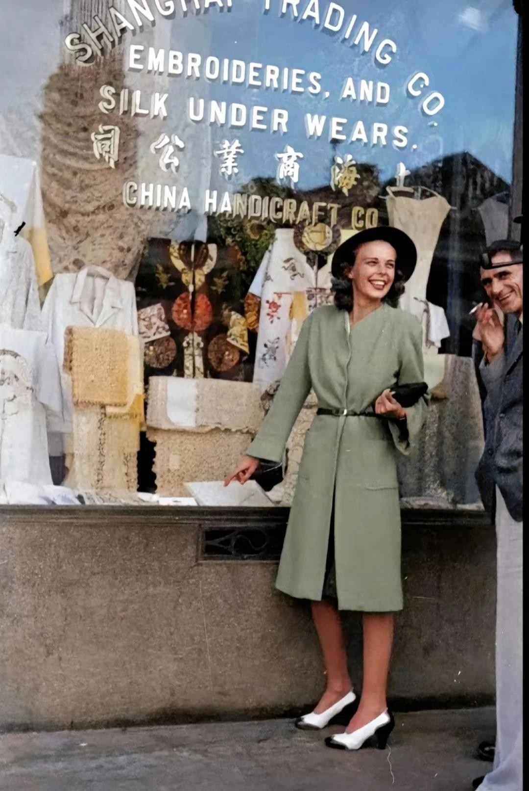 △1934年,上海外滩的服装店,两名外国人靠在橱窗上闲聊。