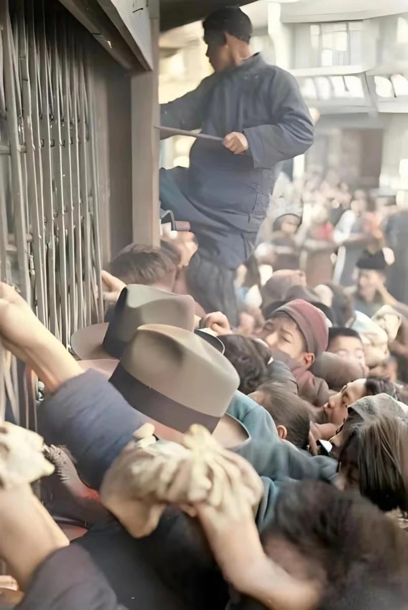 △挤拥不动的抢米人