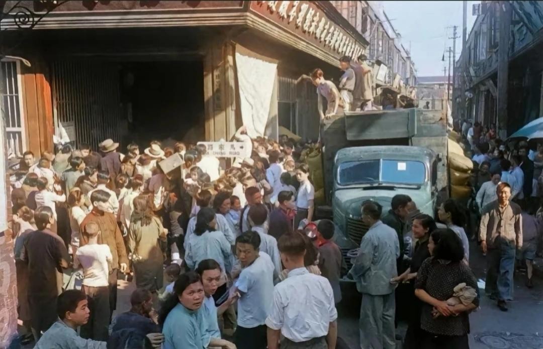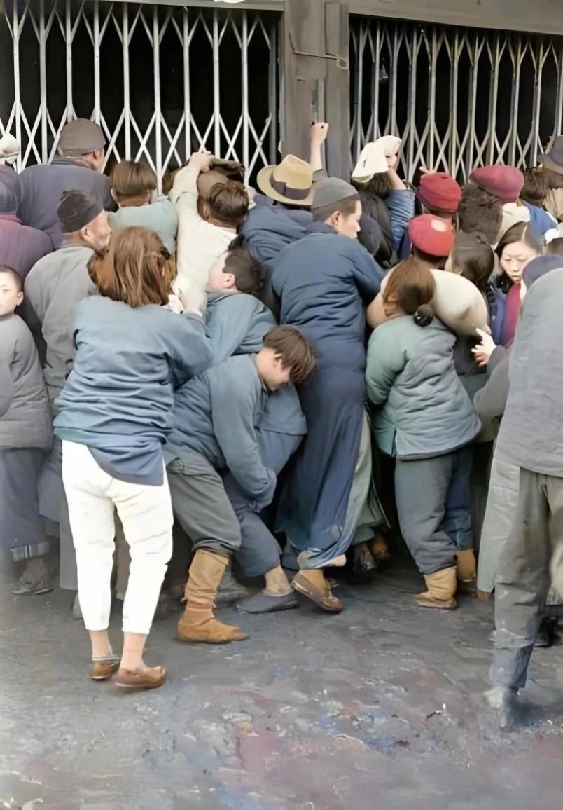 △1949年初,衡山路上的一家米店,人们争先恐后的进入米店。