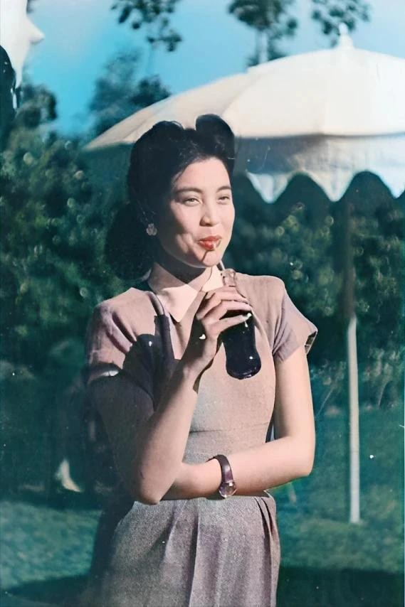 △1939年的上海跑马场,一名女士正在品尝可乐。