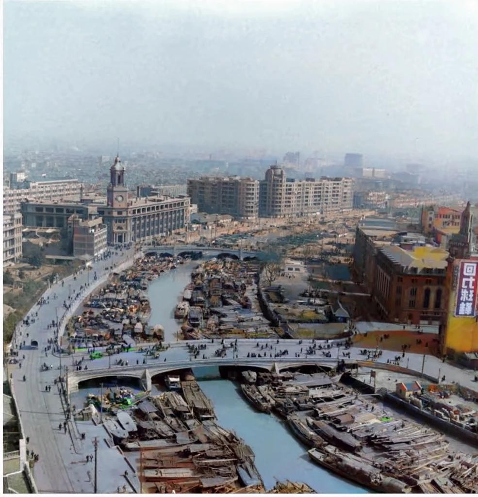 △1949年6月,苏州河上的渔娘,此时上海已经解放,混乱的旧时代就此结束,也露出了开心的笑容。