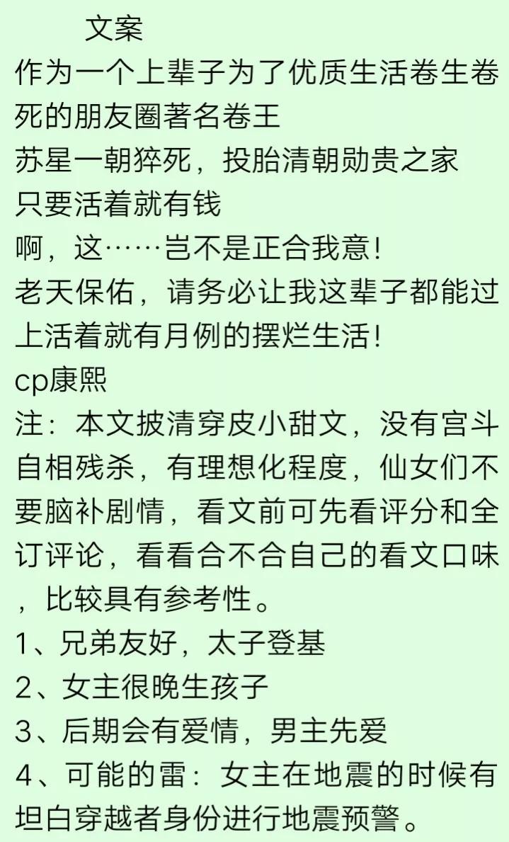《我在清宫躺平失败的日子》理想化清穿小甜文,康熙有了恋爱脑
