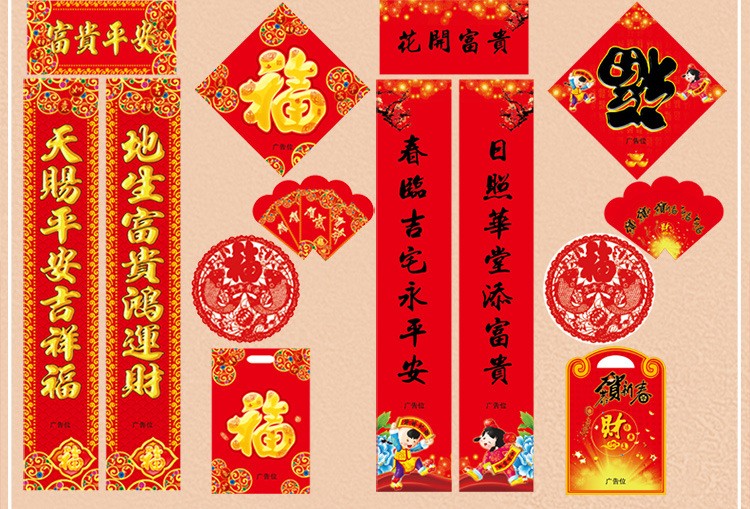 春联也叫门对、春贴、对联、对子、桃符等,内容为寓意美好的上下两句,每逢春节无论城市还是农村,家家户户都要精选一幅大红春联贴于房门两侧,为节日增加喜庆气氛。