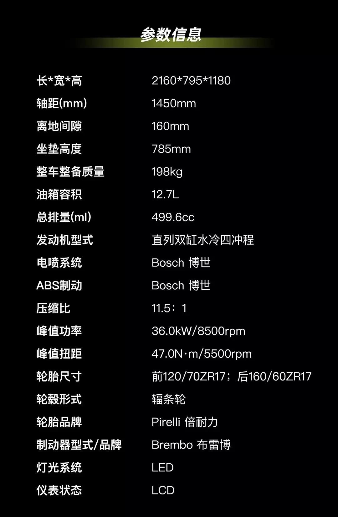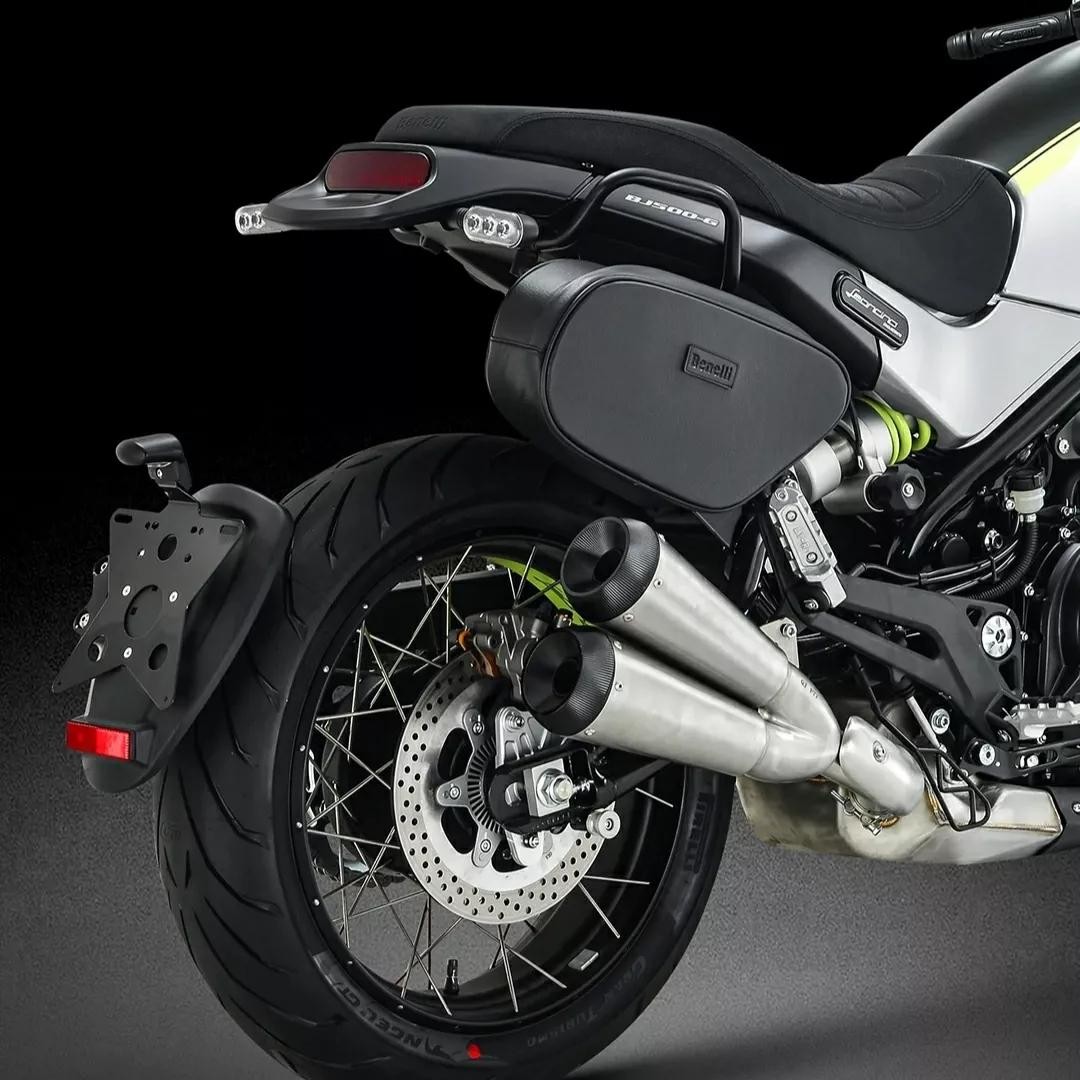 标签式的“猪头款”导流罩,换装了老式分体式车把,坐姿低俯而战斗;辐条轮增强了复古年代感;Y形排气尾端,声浪低沉悦耳;有趣的是贝纳利还原厂附带了一个仿真皮边包来增加雅痞感。这些都是Leoncino 500 Sport与标准版不同的地方。动力和配置看参数表,就不照着念了,一身名牌,该有的都有。