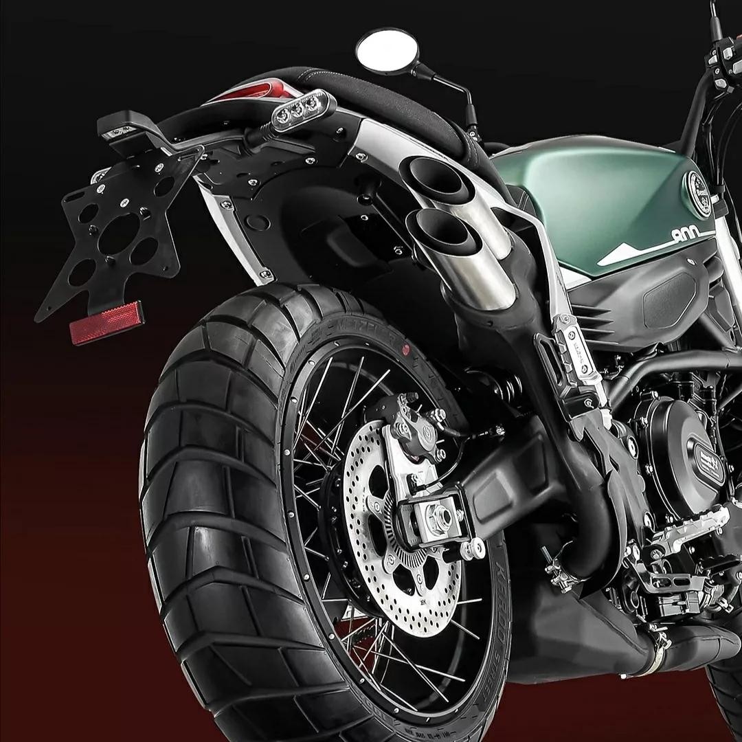 而Leoncino 800 Trail从名字上可以看出,这是一台需要应付“乡间小径”路况,具有一定烂路能力的越野攀爬车型。因此从车身配色到排气位置都做了针对性的调整,辐条轮龟背胎也足够野性,不过发动机似乎缺了一块下护板。动力和配置相比500cc又提升,手把按键背光、TFT彩色仪表、滑动离合器、马祖奇减震等等。