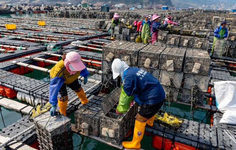 据连江县海洋与渔业局统计,2024年全县鲍鱼养殖面积达1604公顷,总产量达5.9万吨,产值约68亿元,2025年全县投放鲍鱼苗量约20亿粒。