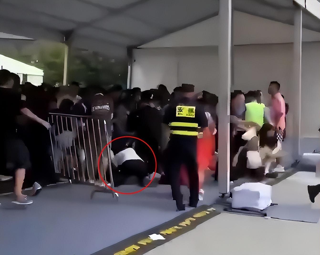 这样拥挤的状态最后还是出了问题,人流量过大导致演唱会安检处的机器被推翻了,于是前面被挤着的粉丝也跟着摔倒了,但是可怕的是,后面的人完全没有要停止的意思,还是一个劲儿的往前冲,哪怕保安和民警都已经到达了现场,这样的情况还是没有丝毫改善。