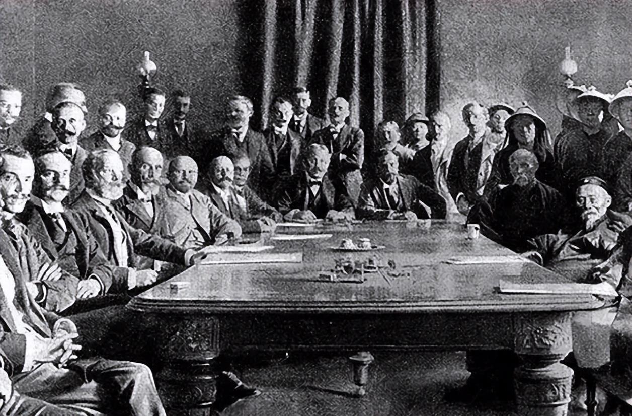 图为《辛丑条约》签订现场,这是中国近代以来最严重的不平等条约,它的签订,标志着当时的中国彻底沦为半殖民地半封建国家