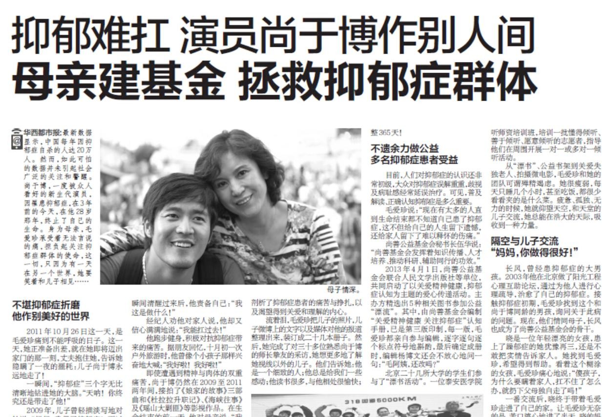 2011年,尚于博因抑郁症跳楼自杀,1年后,其母亲的举动令人动容