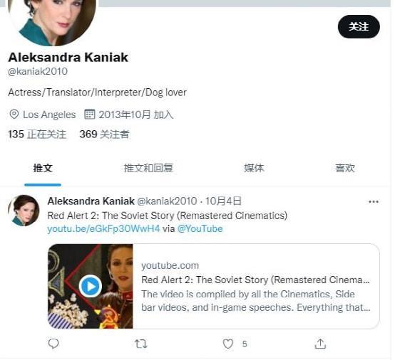 亚历山德拉本人也很喜欢她在《红色警戒2》中的表演,就在前几天,她还转发了油管上重置版红警2苏联战役过场动画,即使已经过去了那么多年,亚历山德拉个人推特还时不时地发一些关于由她所饰演的佐菲亚的相关内容。