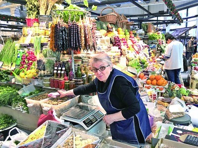 图为莫斯科市中心一处农贸市场的摊主推销自家货品。韩显阳摄/光明图片