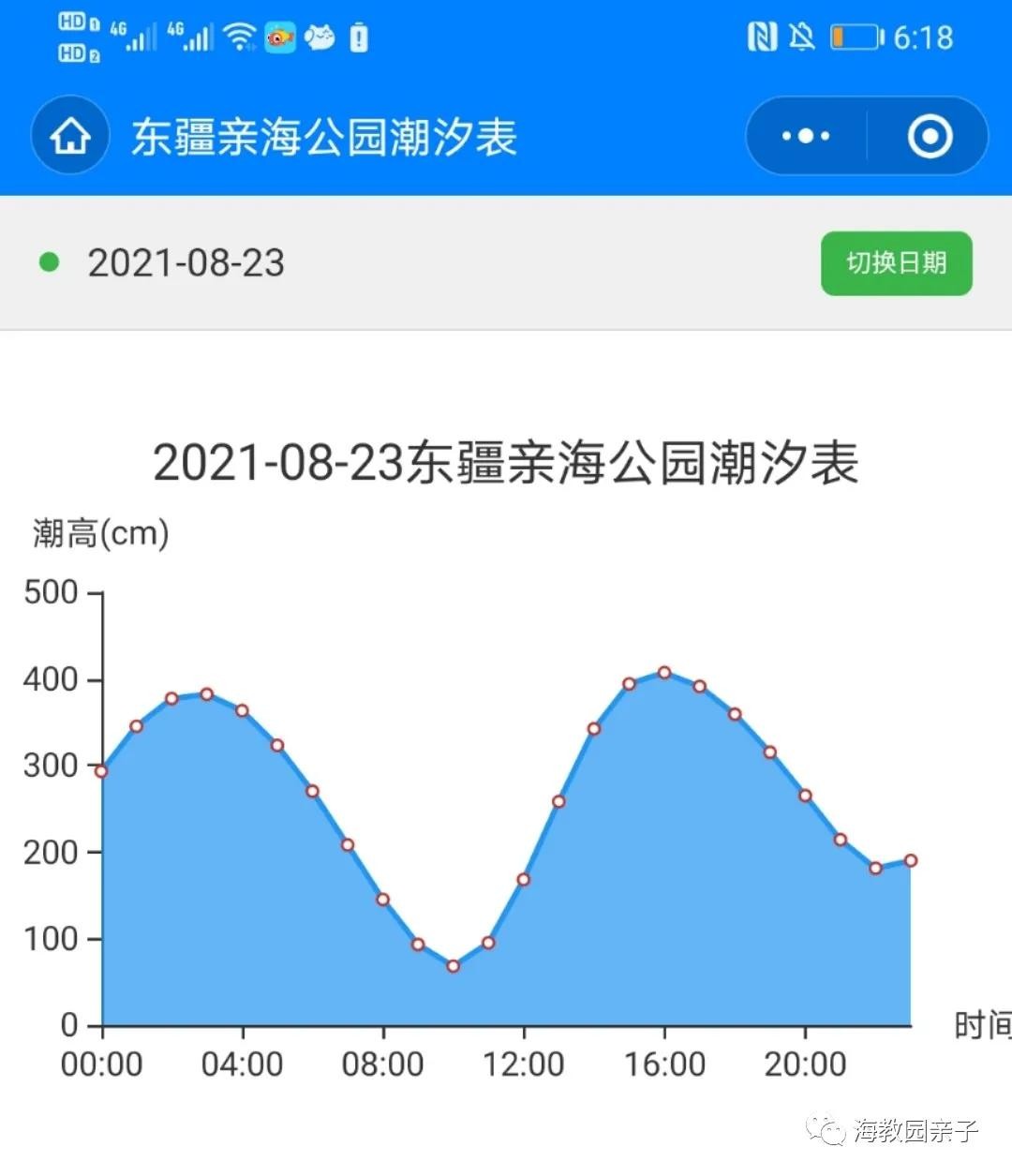 2、潮汐表:务必提前一天查好当日潮汐,不然可能挖不到东西;退潮时前往,干潮时前2小时左右达到最好。农历初一、十五左右大潮,大潮日涨潮最高, 落潮最低,而且潮水退的又快又远,去赶海玩的时间长收获也会多哦!