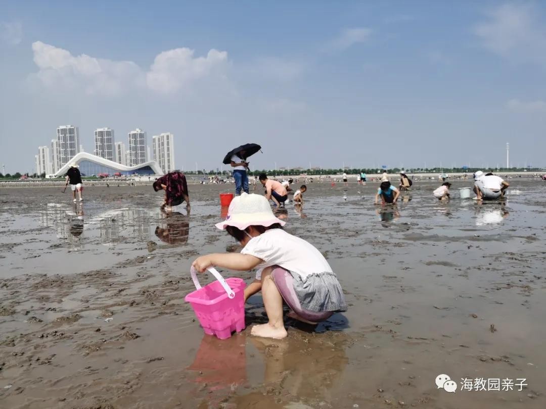 查好潮汐表,赶在暑假的尾巴上,和好友一起带着孩子奔向海边,来一次痛快的赶海活动。亲海公园新开放不久,退潮后很好挖到海货,而且都很肥。
