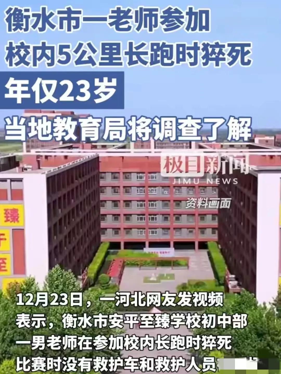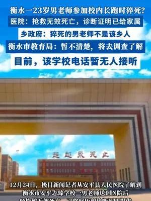 近日,一则令人痛心的消息在河北衡水市传开:一位年仅23岁的初中老师在参加学校组织的5公里长跑比赛时,不幸猝死。这一事件迅速在网络上发酵,引发了广泛关注和热议。