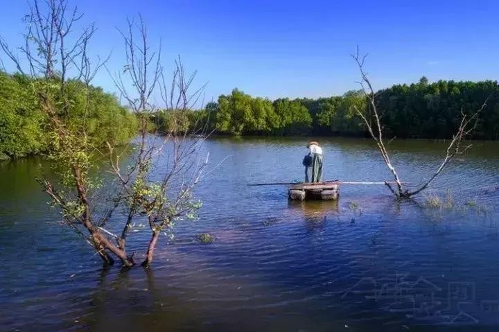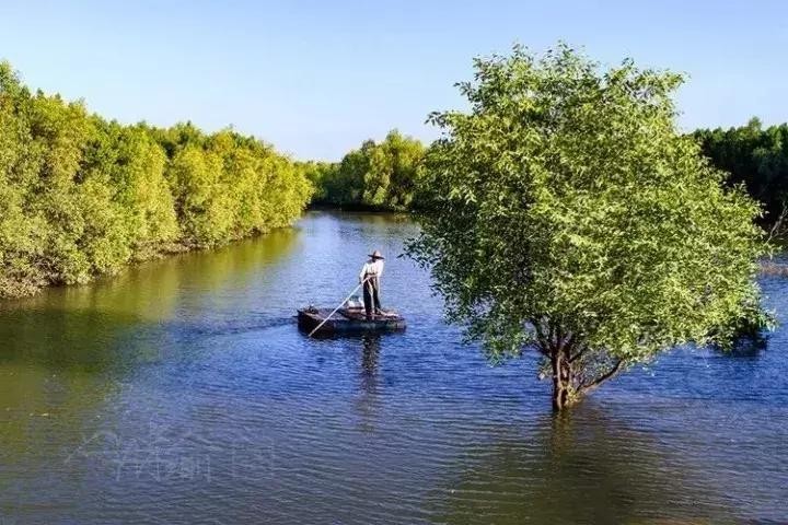 一条长约1500米的木栈道蜿蜒在红树林中央,漫步其中,怡然自得。