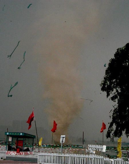这里有一座古庙,供奉民间传说中的北顶娘娘,许多老人十分敬畏这座庙宇。但是,当时为了方便施工,准备拆掉这座庙 宇。各项准备工作结束以后,拆迁工程就开始了。然而,刚刚拆掉两扇门后,鸟巢附近就刮来了一阵罕见的大风,将已经建好的地基全部摧毁,建筑现场有两名工人 被砖石打死(后奇迹复活,编者注),几十名工人受伤。专家告诉大家说这是陆地上罕见的龙卷风,数百年才出现一次。大家虽然觉得十分怪异,但想到专家这么 说,拆迁工作还是继续进行。但是,第二天,一个更离奇的消息从水立方传来。
