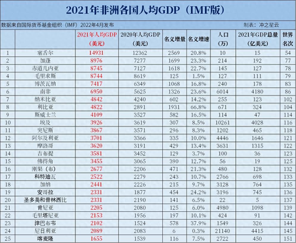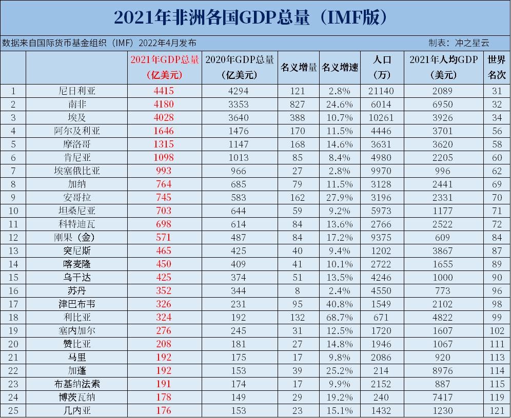 2021年非洲各国GDP和人均GDP排名,仅1国人均超1万美元