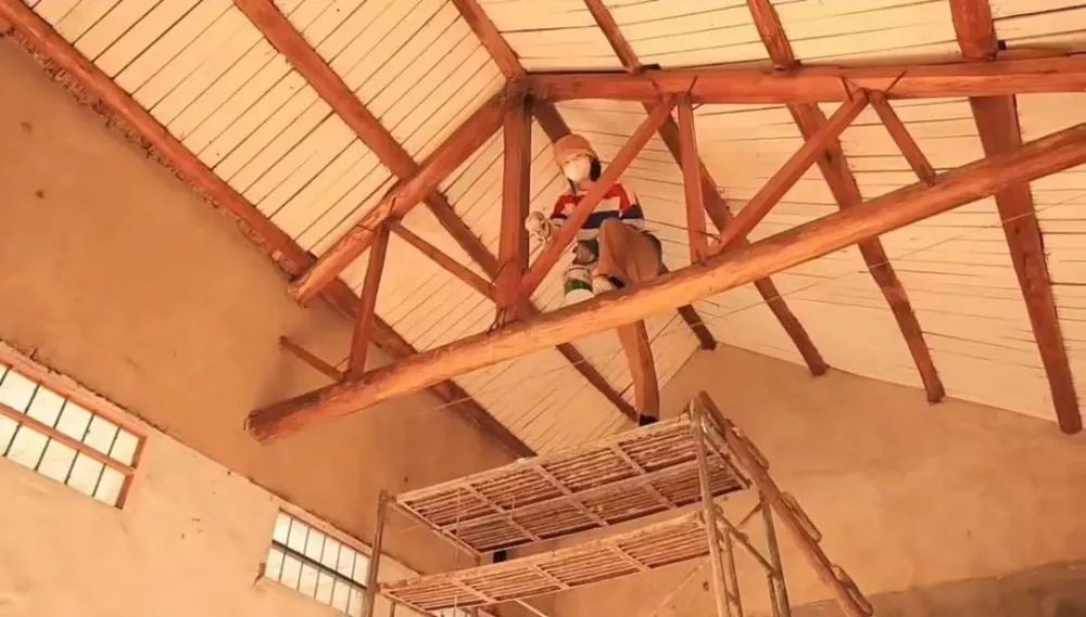花了3天时间结束堂屋的吊顶,保留了梁和檩的结构美。