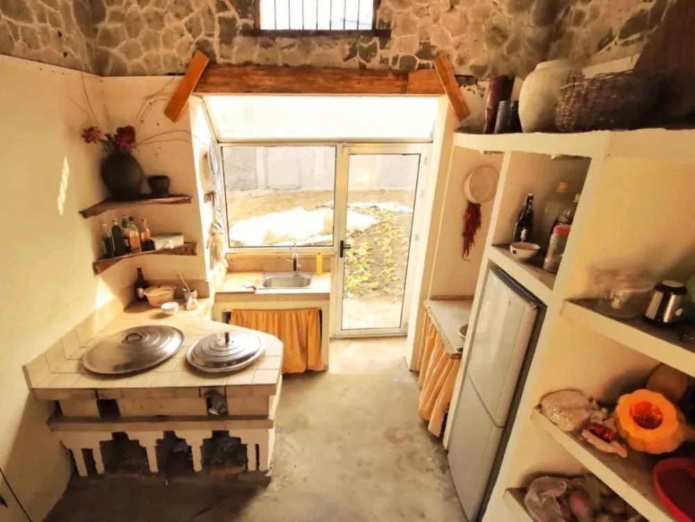考虑到安全问题和老人做饭的习惯,她们保留了原有的柴火灶。
