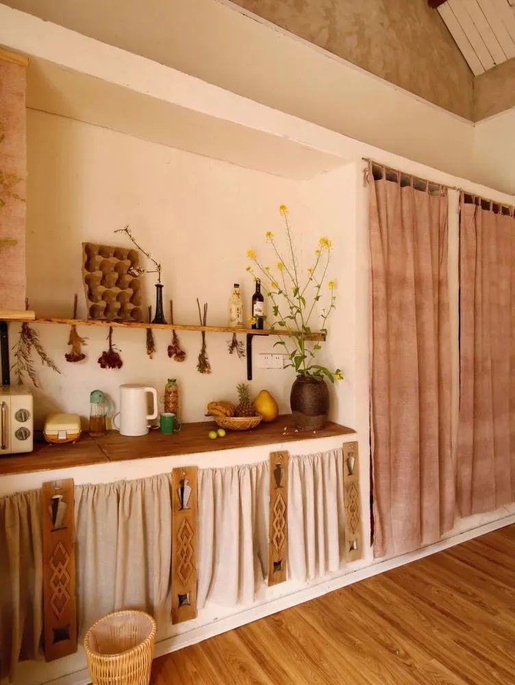 “越是预算少,越是要把功能放在第一位,解决最大的问题。软装可考虑可回收材料替代,比如旧的门和材料都可以利用。装饰性的东西,装饰画,相册,尽量选用不花钱的材料进行改造。植物选择当地的,便宜又能养活……”