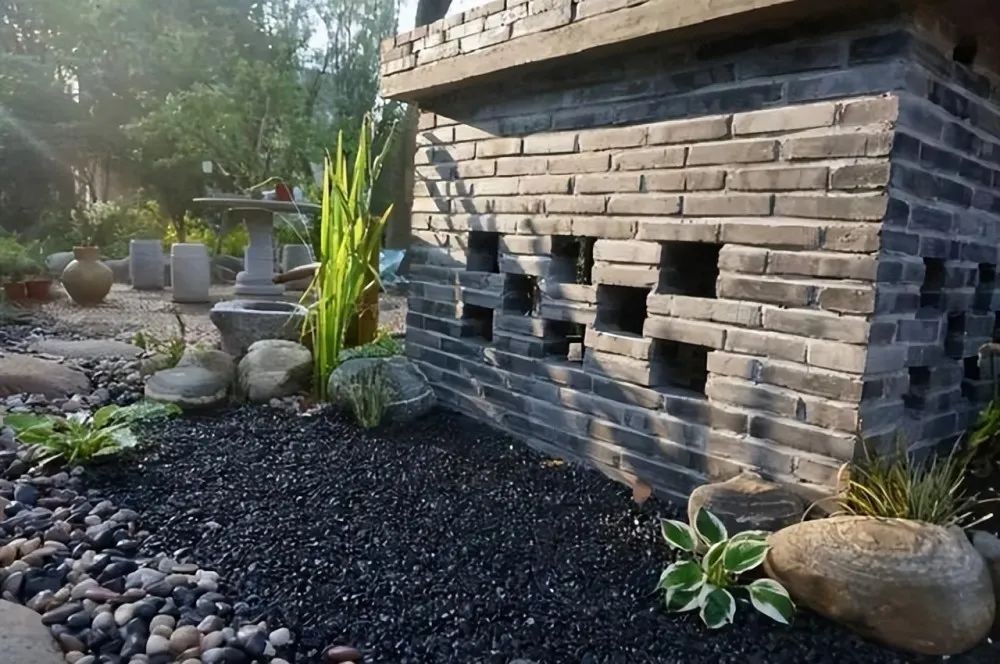 于是,采用青砖砌筑,利用竹筒和马槽,简单地营造出了水的灵动之美,为庭院引入了潺潺流动的水声。
