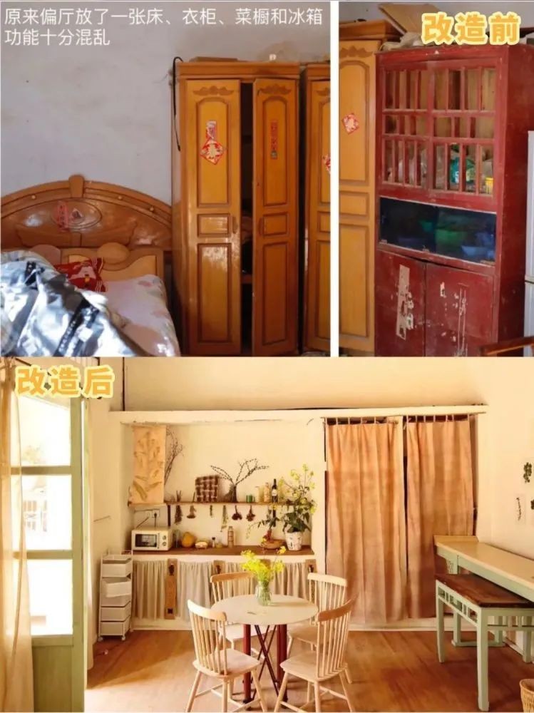 这是一个有着40多年悠久历史的破旧小院,前后花了一个月改造,先上改造前后对比。