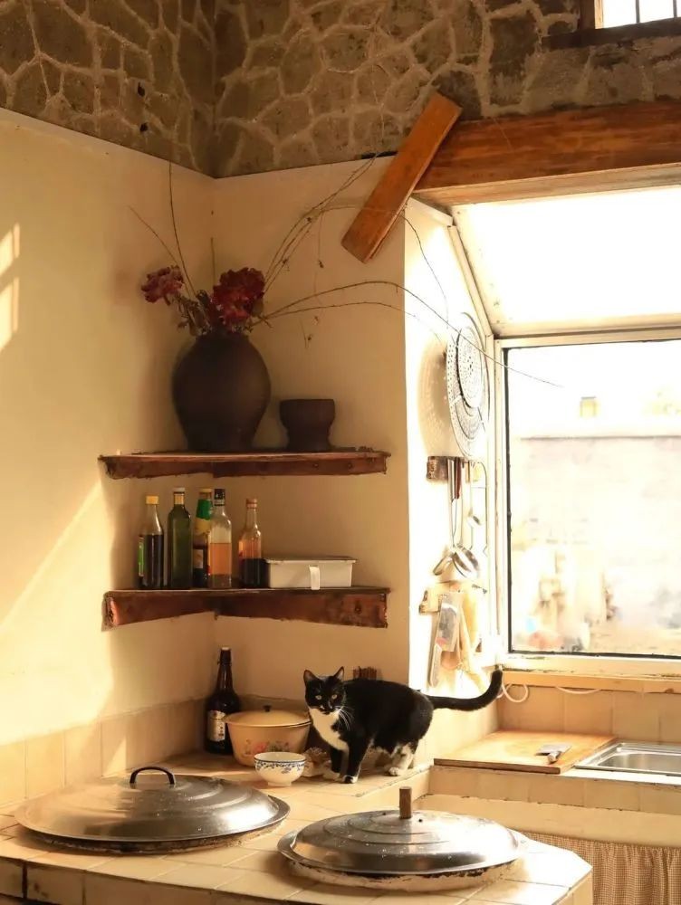 为了增加采光,她们外扩墙体,同时涂料也调配成了暖黄色,增加厨房光线的反射率。
