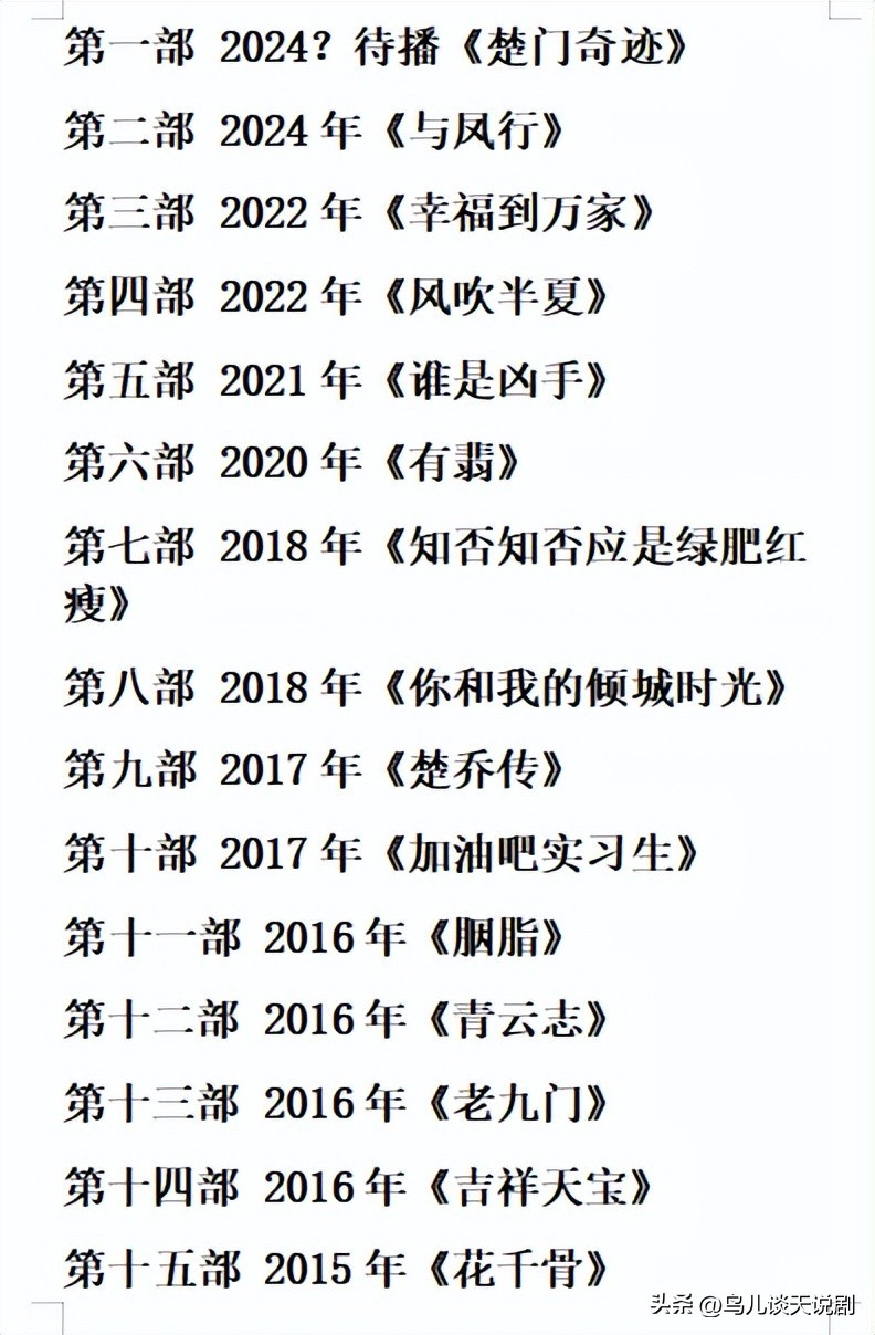 这么多的电视剧,你看了多少?喜欢哪几部呢?欢迎友友们留言讨论,一起聊聊这些年,我们一起看过的,那些赵丽颖主演的电视剧,还有回忆。#记录我的2024##精品长文创作季#