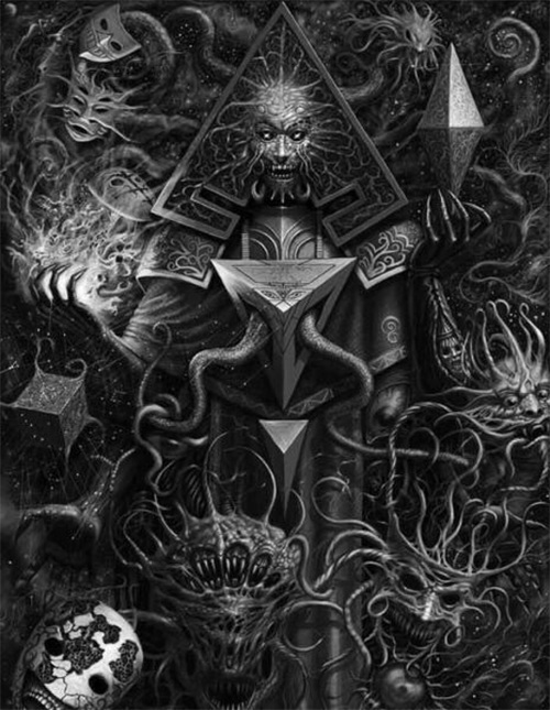 例如开篇洛夫克拉夫特的《克苏鲁的呼唤》里,克苏鲁是深陷在海洋深处的,而不是神圣的奥林匹斯山或是奇妙的仙境。其他文章里的“神明”也多是深藏在史前的洞穴里或是毫无描写的外太空里;其次,这些“神明”是没有操纵一切的力量的,而且是没有善恶之分的,或者说他们的善恶观是不同于人类的,就像我们走在路上踩死蚂蚁,在蚂蚁看来我们是恶的,但是人类的善恶观里这并不是恶。之所以这样说,是因为在多数的故事里,这些“神明”的出现都是由于人类的召唤,即使召唤招致死亡,也都是只波及少数人,被召唤出来的“神明”并没有大开杀戒;最后,就是这些“神明”的形象不再以人类自身为蓝本,皆为奇异的无法被准确描述的生物体。