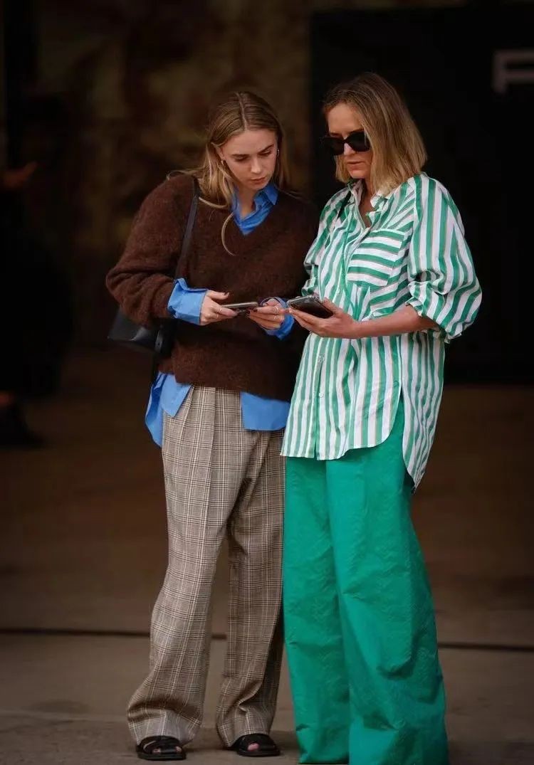 如果秋冬穿浓郁的棕色,但又希望能同时拥有一份清爽淡雅,那么,内搭可以选择浅淡一些的蓝色单品,例如淡蓝色的衬衫和牛仔阔腿裤,看起来更雅致。