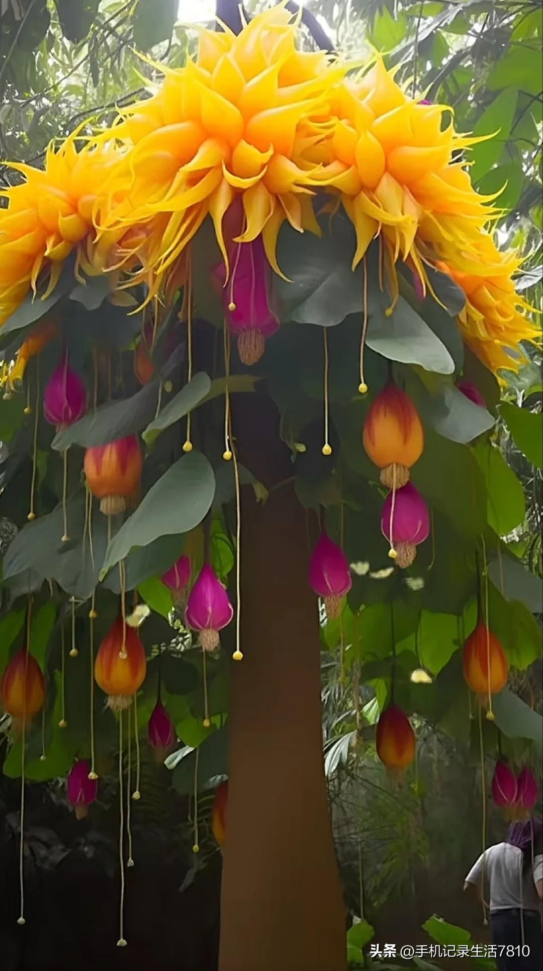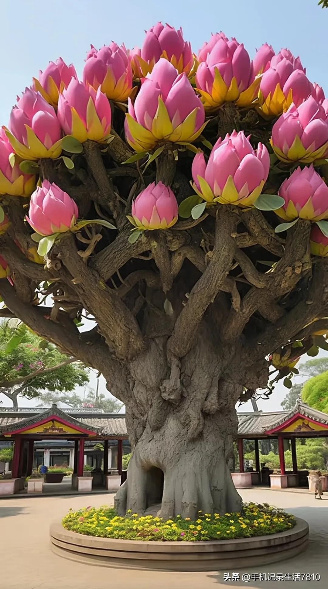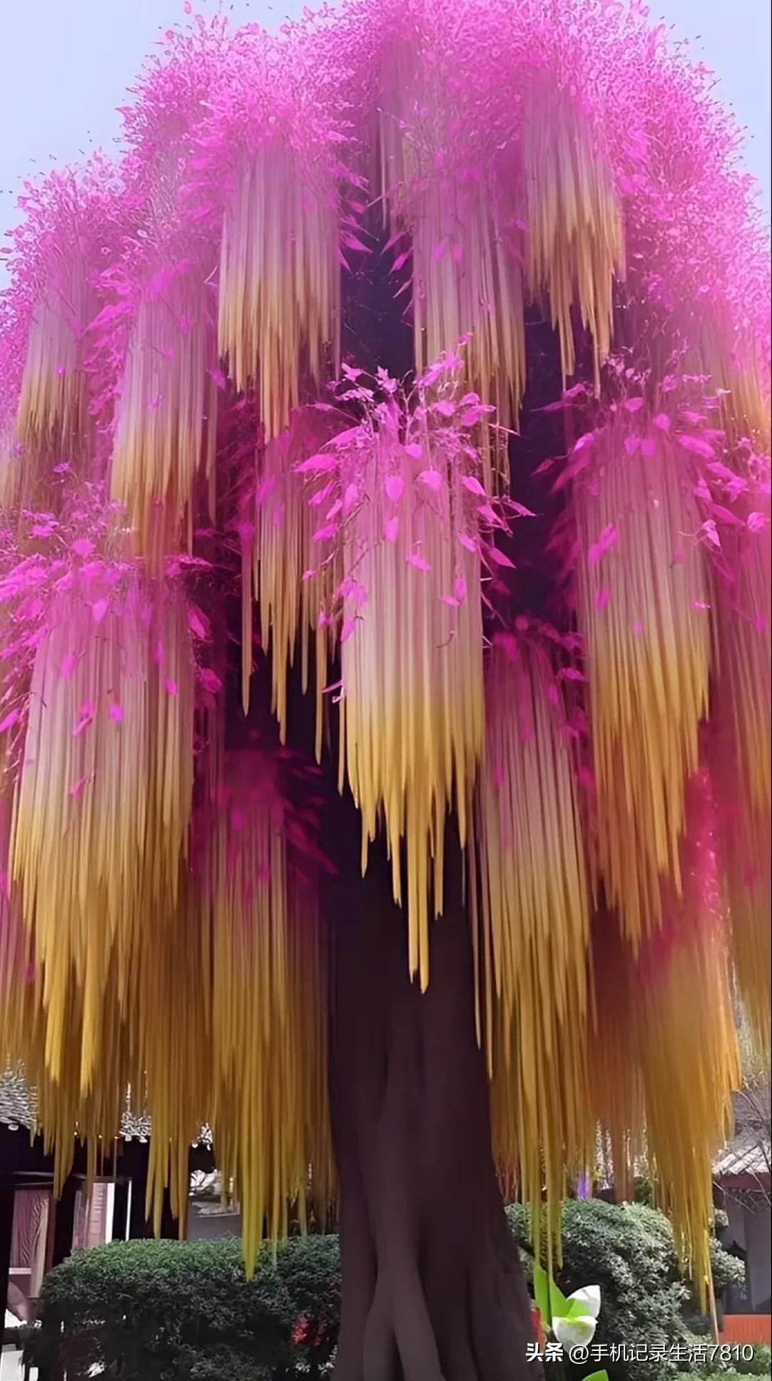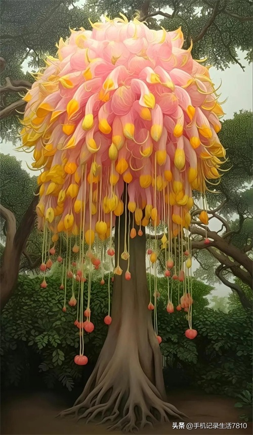 这棵奇树,它的枝叶如诗如画,犹如大自然的杰作,让人感受到生命的美好与灵动。绿叶如云,花团锦簇,清新宜人。