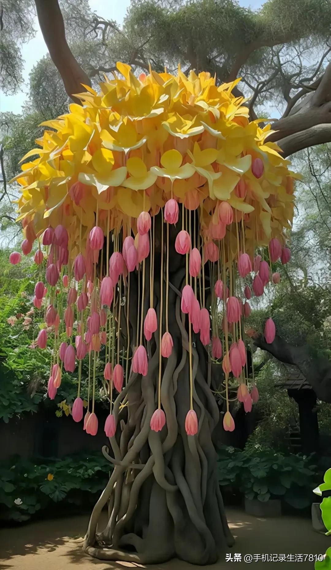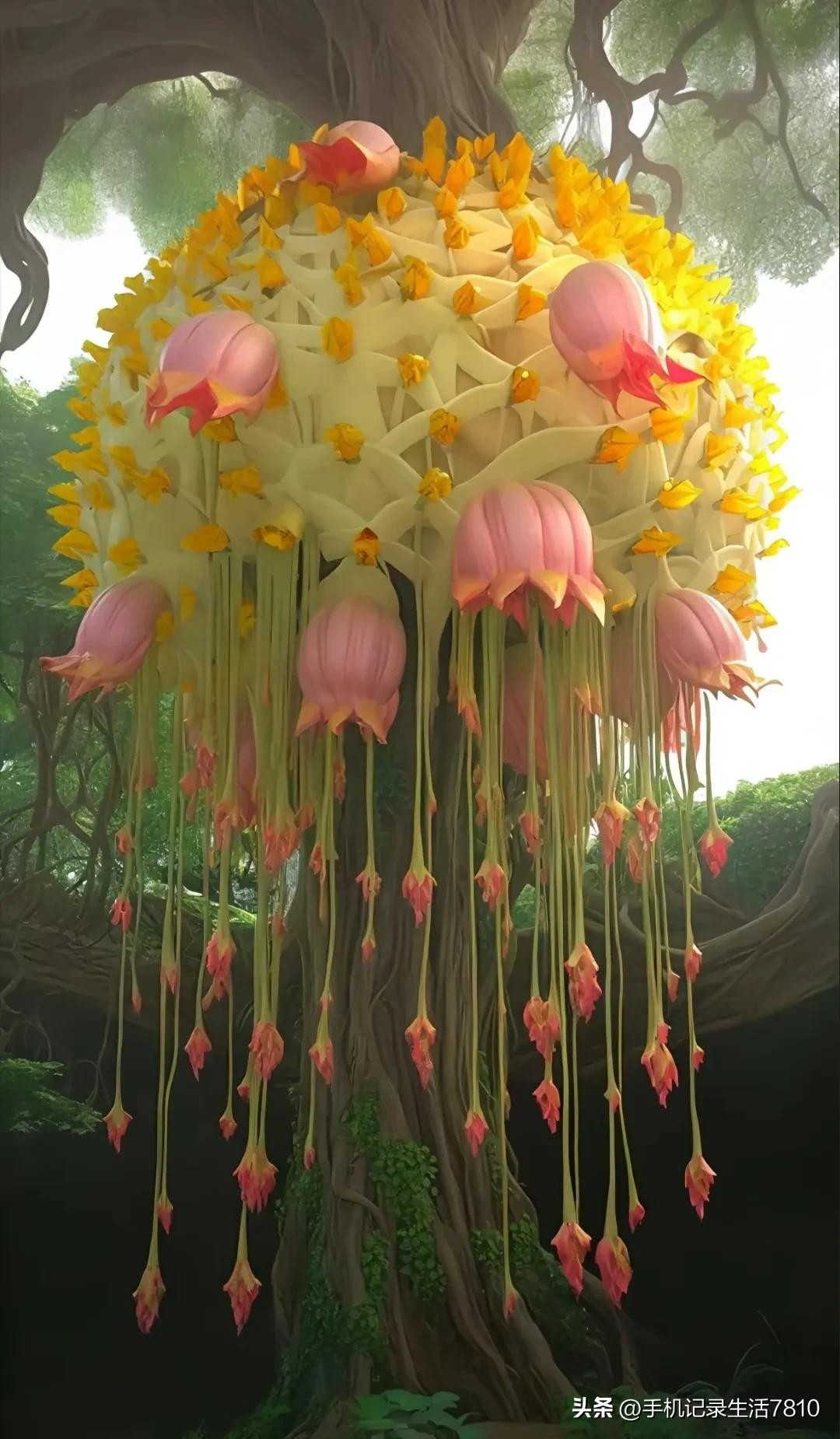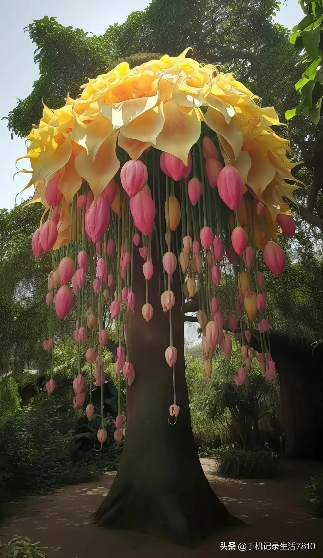 这棵奇树,它的枝叶如诗如画,犹如大自然的杰作,让人感受到生命的美好与灵动。绿叶如云,花团锦簇,清新宜人。